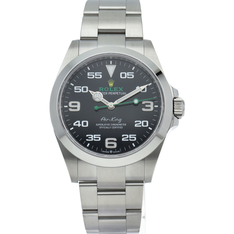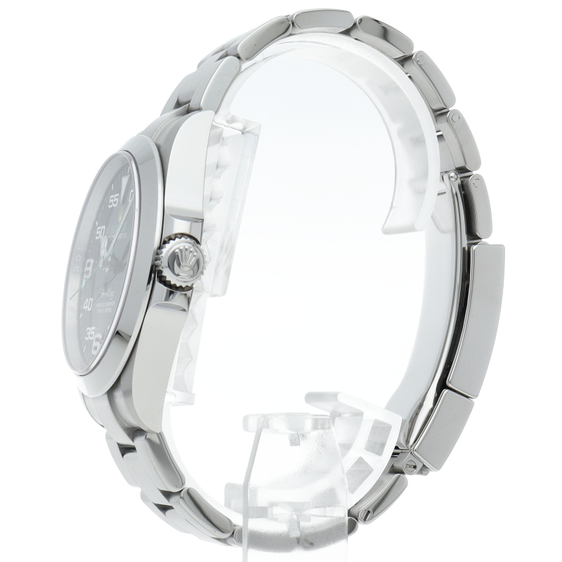 2022年発表のニューモデル、Ref.126900「オイスターパーペチュアル エアキング」。飛躍的に航空技術が進歩した1930年代に高精度を求めるパイロットに愛されていたオイスターモデルをオマージュして製造されたパイロットウォッチです。