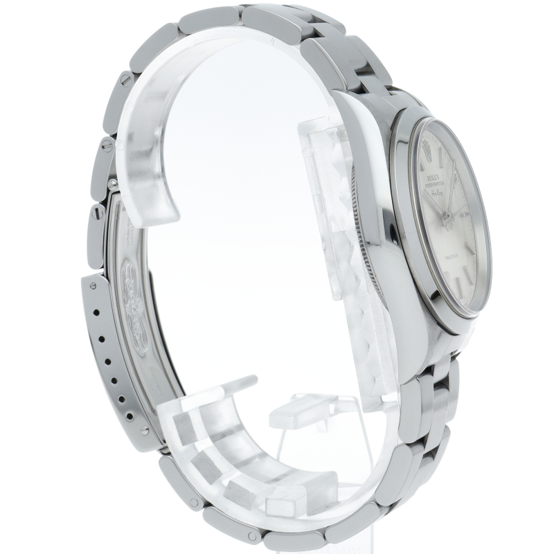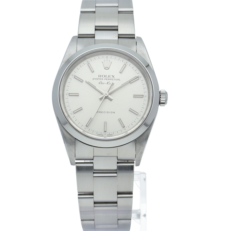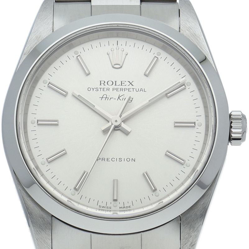 ロレックスの中でもシンプルでオーソドックなデザインが人気の「エアキング」。時計本来の性能を追求し、スタイルを選ばず使用できます。