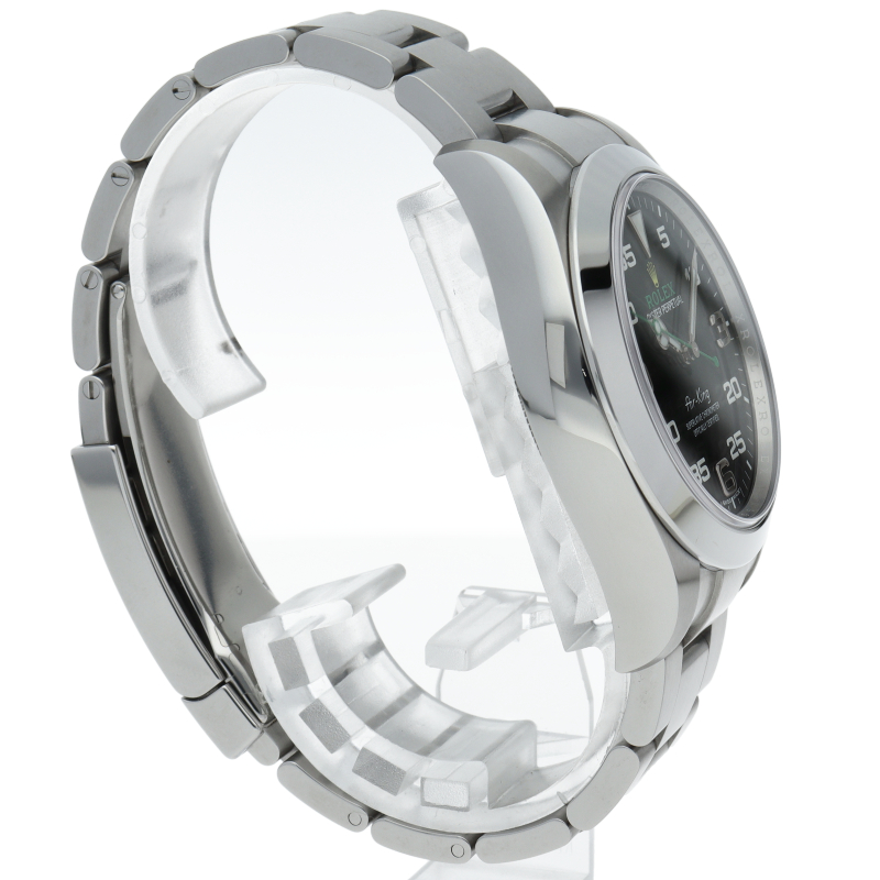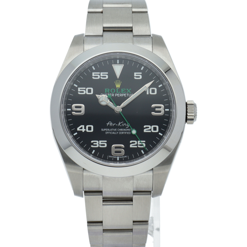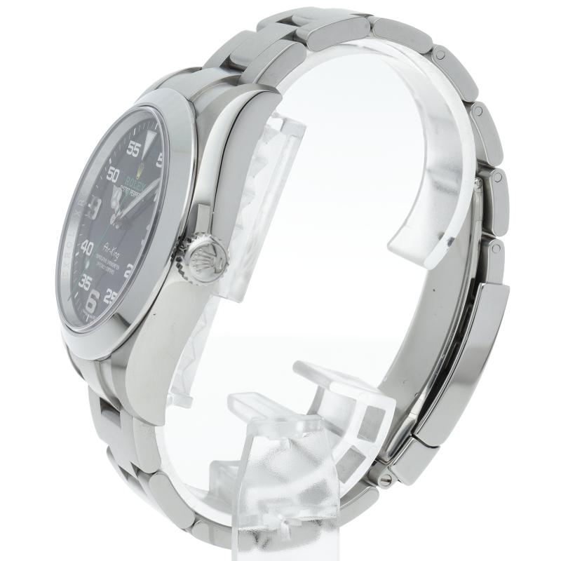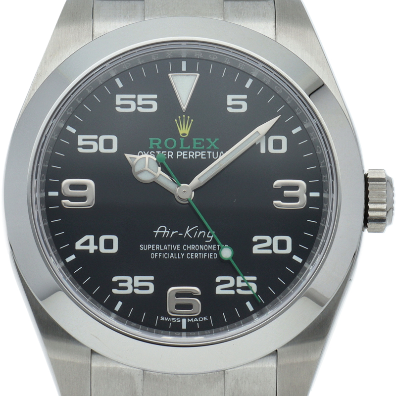2016年発表のニューモデル、Ref.116900「オイスターパーペチュアル エアキング」。飛躍的に航空技術が進歩した1930年代に高精度を求めるパイロットに愛されていたオイスターモデルをオマージュして製造されたパイロットウォッチです。