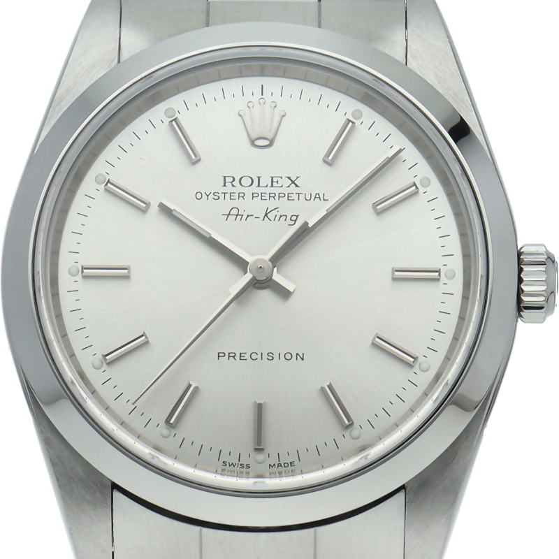 ロレックスの中でもシンプルでオーソドックなデザインが人気の「エアキング」。時計本来の性能を追求し、スタイルを選ばず使用できます。