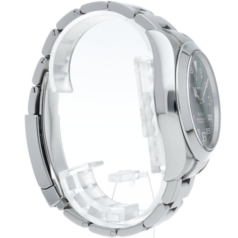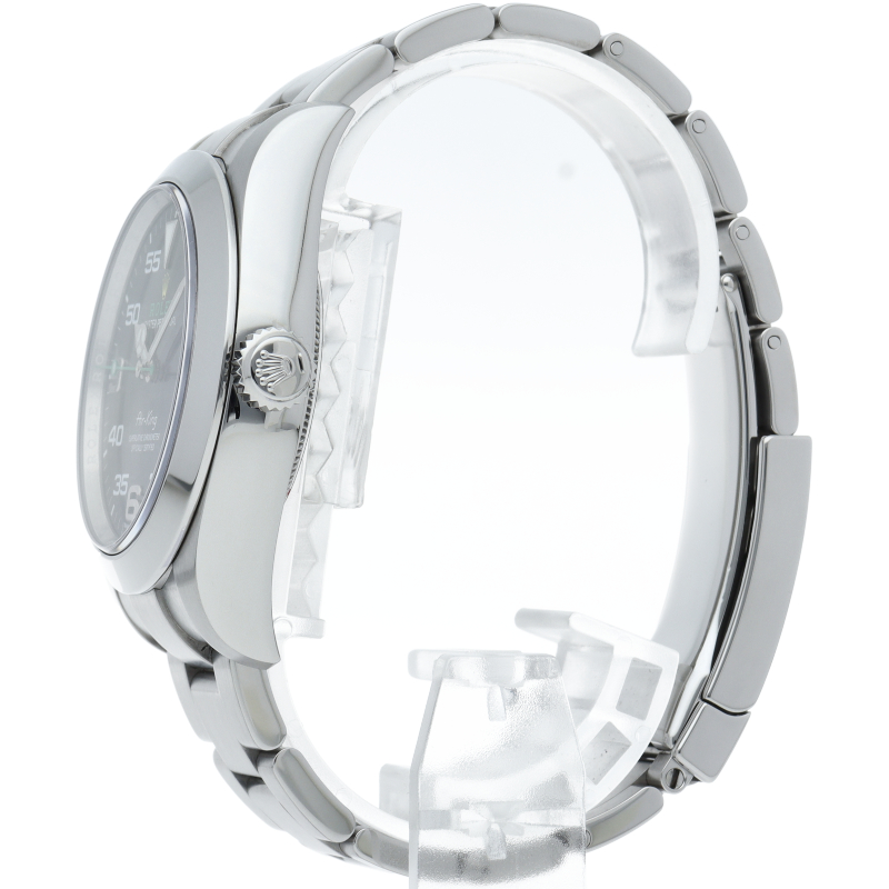 2016年発表のニューモデル、Ref.116900「オイスターパーペチュアル エアキング」。飛躍的に航空技術が進歩した1930年代に高精度を求めるパイロットに愛されていたオイスターモデルをオマージュして製造されたパイロットウォッチです。