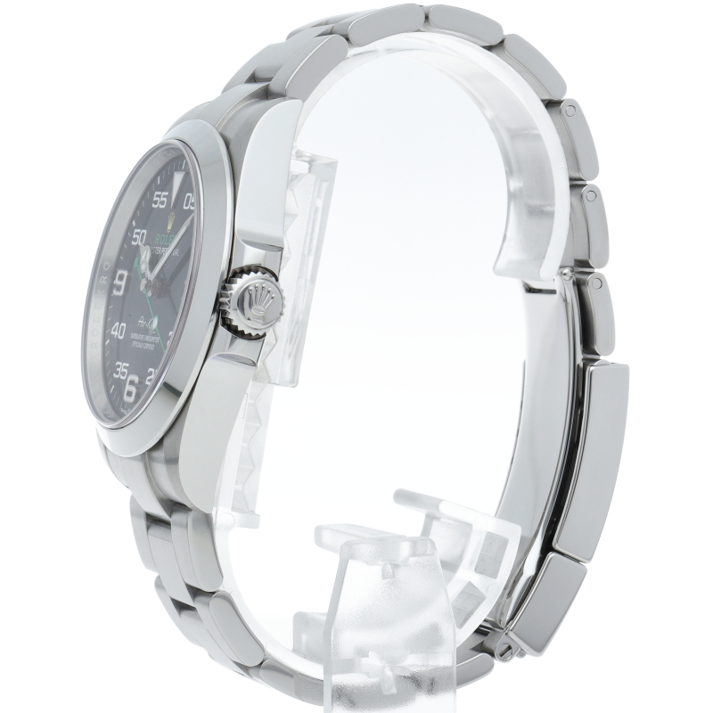 2022年発表のニューモデル、Ref.126900「オイスターパーペチュアル エアキング」。飛躍的に航空技術が進歩した1930年代に高精度を求めるパイロットに愛されていたオイスターモデルをオマージュして製造されたパイロットウォッチです。