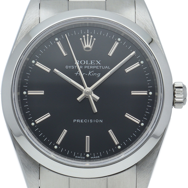 ロレックスの中でもシンプルでオーソドックなデザインが人気の「エアキング」。時計本来の性能を追求し、スタイルを選ばず使用できます。