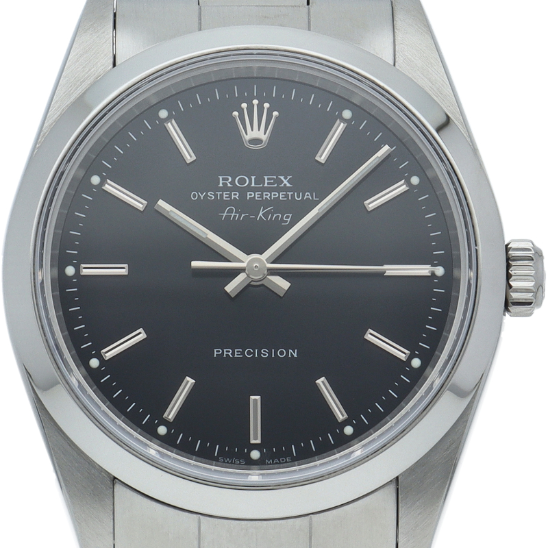 ロレックスの中でもシンプルでオーソドックなデザインが人気の「エアキング」。時計本来の性能を追求し、スタイルを選ばず使用できます。