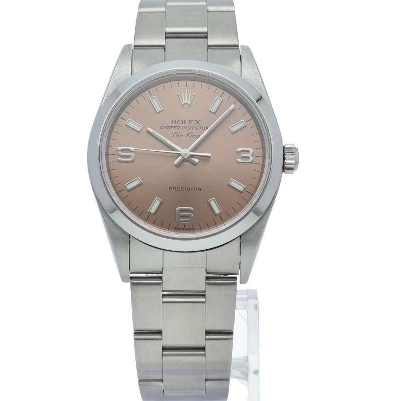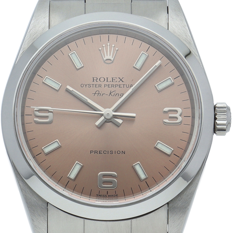 ロレックスの中でもシンプルでオーソドックなデザインが人気の「エアキング」。時計本来の性能を追求し、スタイルを選ばず使用できます。