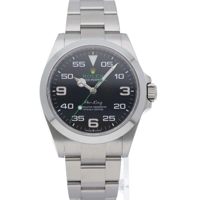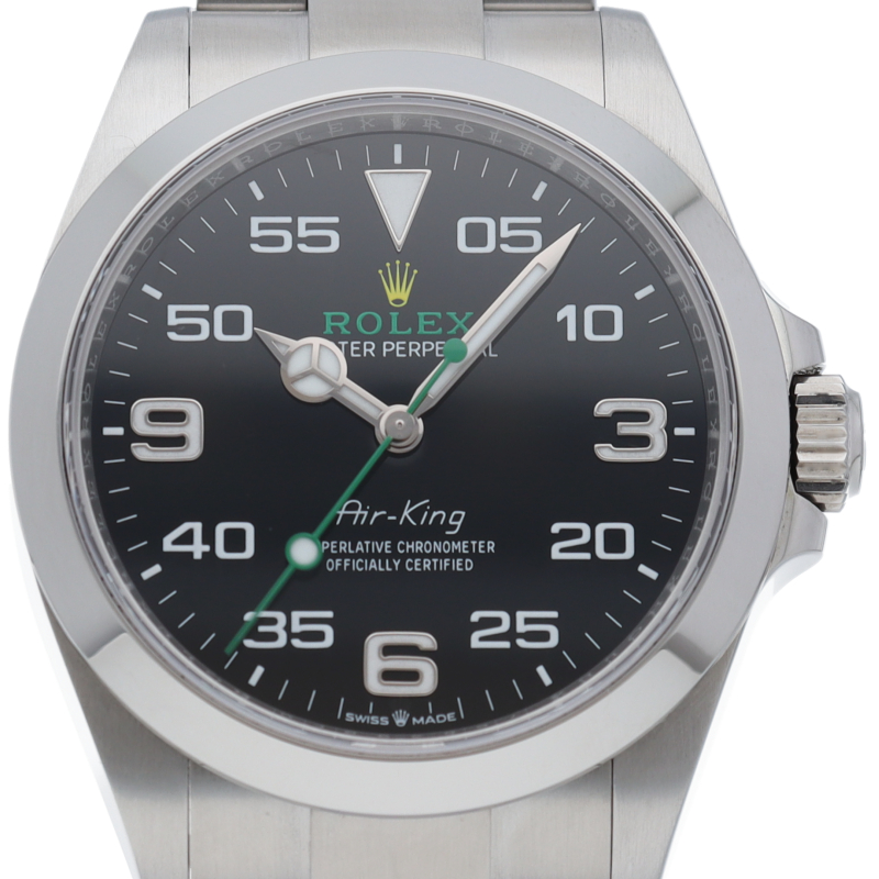 2022年発表のニューモデル、Ref.126900「オイスターパーペチュアル エアキング」。飛躍的に航空技術が進歩した1930年代に高精度を求めるパイロットに愛されていたオイスターモデルをオマージュして製造されたパイロットウォッチです。