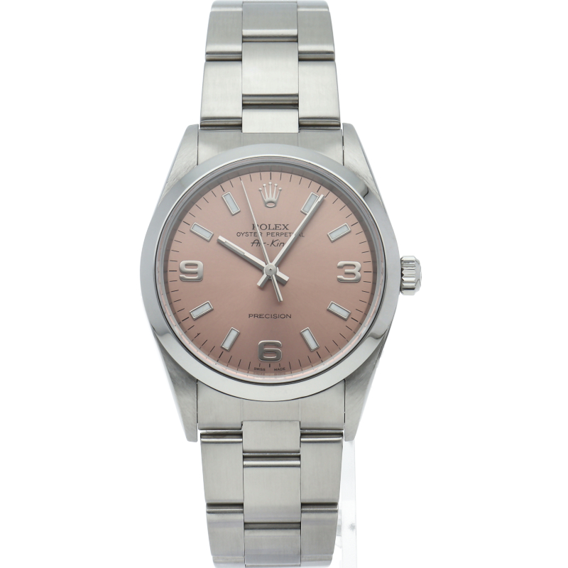 ロレックスの中でもシンプルでオーソドックなデザインが人気の「エアキング」。時計本来の性能を追求し、スタイルを選ばず使用できます。