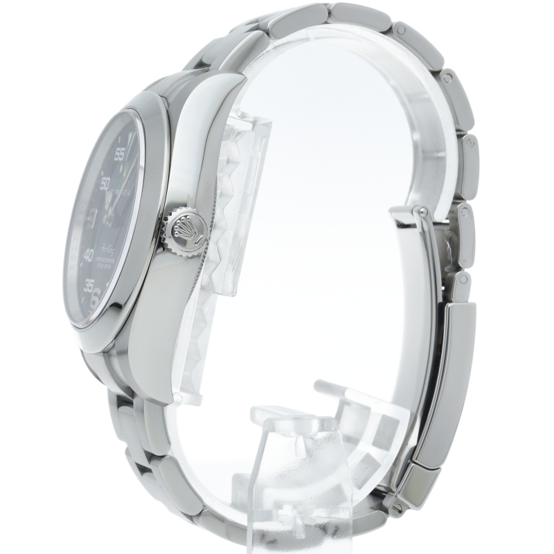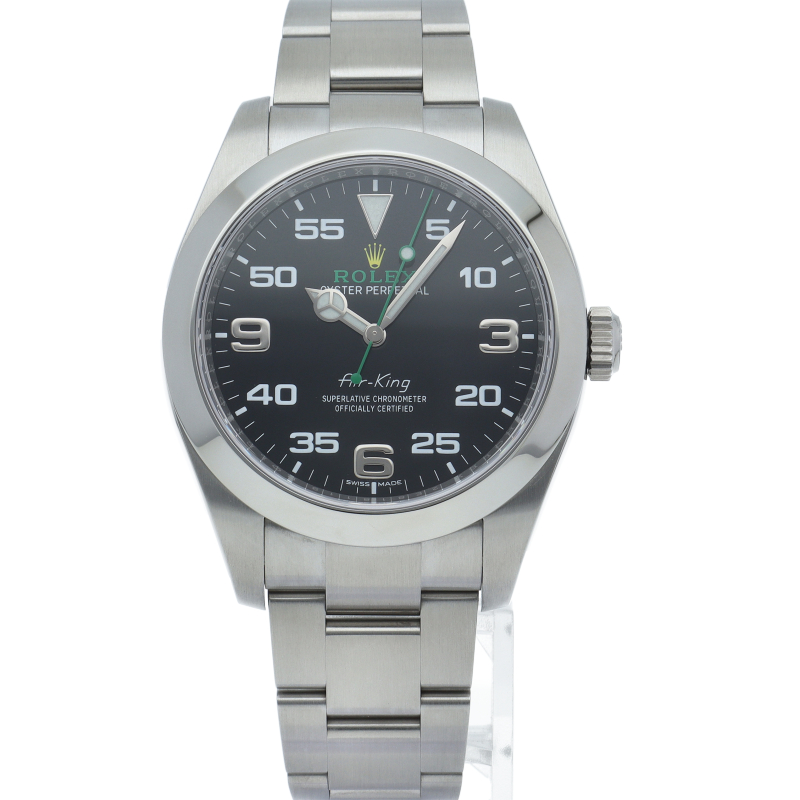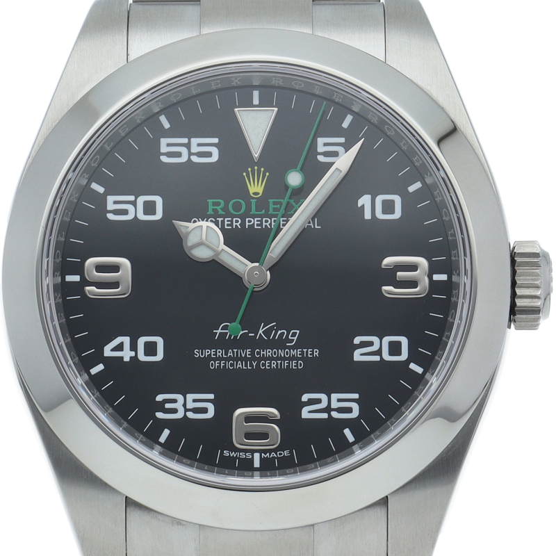 2016年発表のニューモデル、Ref.116900「オイスターパーペチュアル エアキング」。飛躍的に航空技術が進歩した1930年代に高精度を求めるパイロットに愛されていたオイスターモデルをオマージュして製造されたパイロットウォッチです。