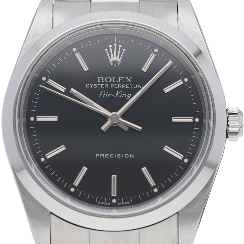 ロレックスの中でもシンプルでオーソドックなデザインが人気の「エアキング」。時計本来の性能を追求し、スタイルを選ばず使用できます。