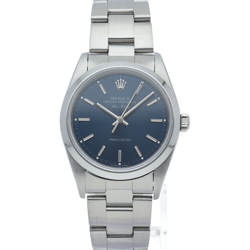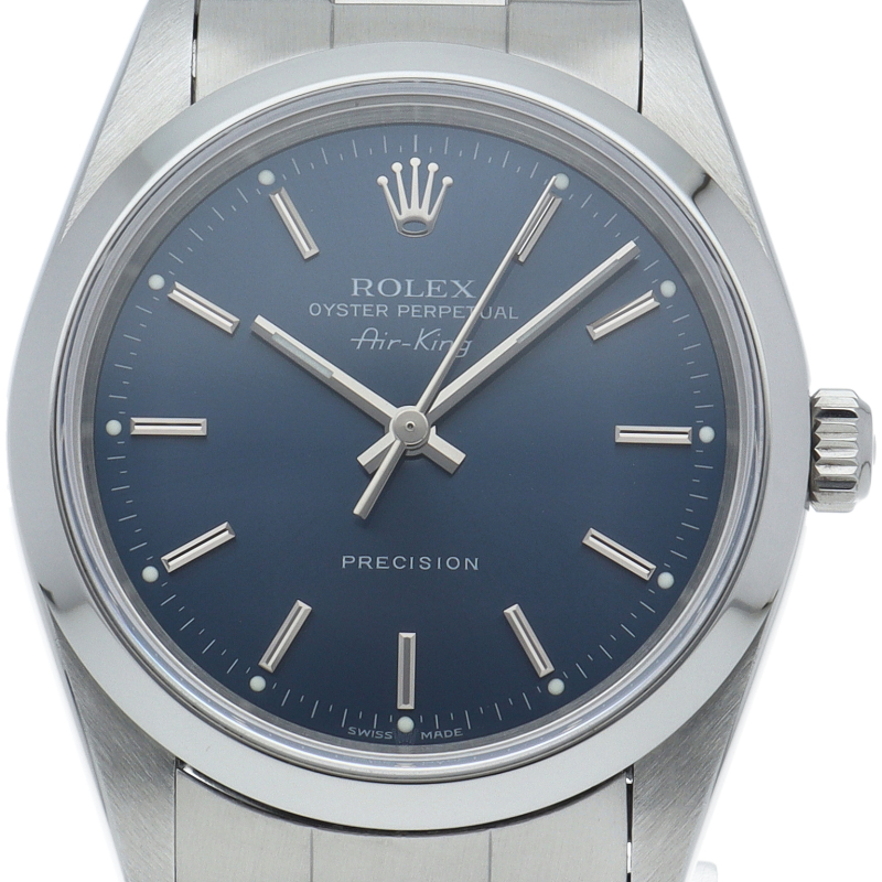 ロレックスの中でもシンプルでオーソドックなデザインが人気の「エアキング」。時計本来の性能を追求し、スタイルを選ばず使用できます。