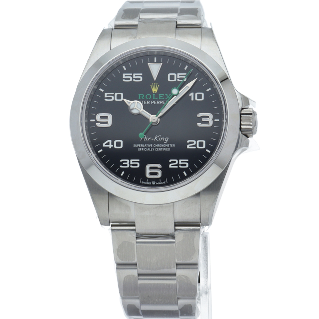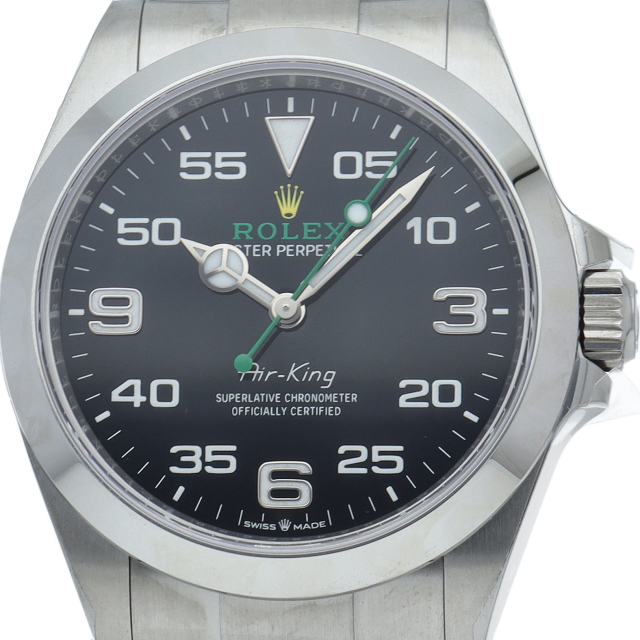 2022年発表のニューモデル、Ref.126900「オイスターパーペチュアル エアキング」。飛躍的に航空技術が進歩した1930年代に高精度を求めるパイロットに愛されていたオイスターモデルをオマージュして製造されたパイロットウォッチです。