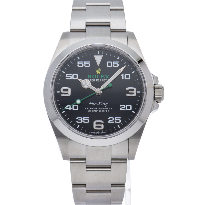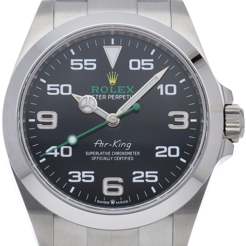 2022年発表のニューモデル、Ref.126900「オイスターパーペチュアル エアキング」。飛躍的に航空技術が進歩した1930年代に高精度を求めるパイロットに愛されていたオイスターモデルをオマージュして製造されたパイロットウォッチです。