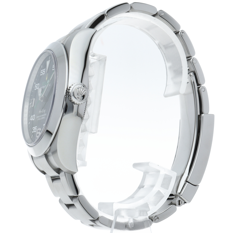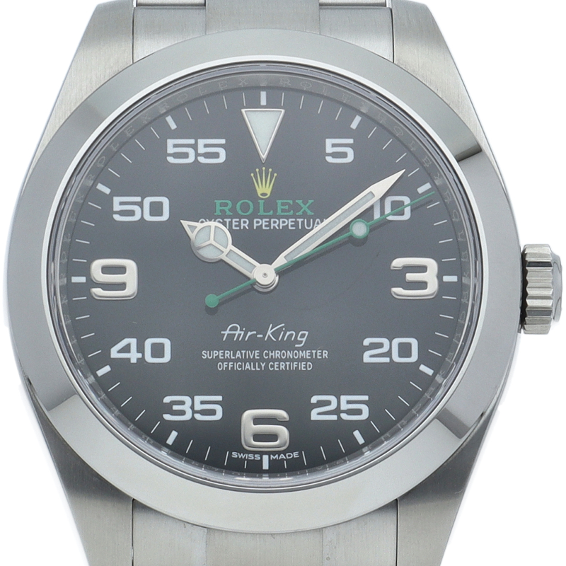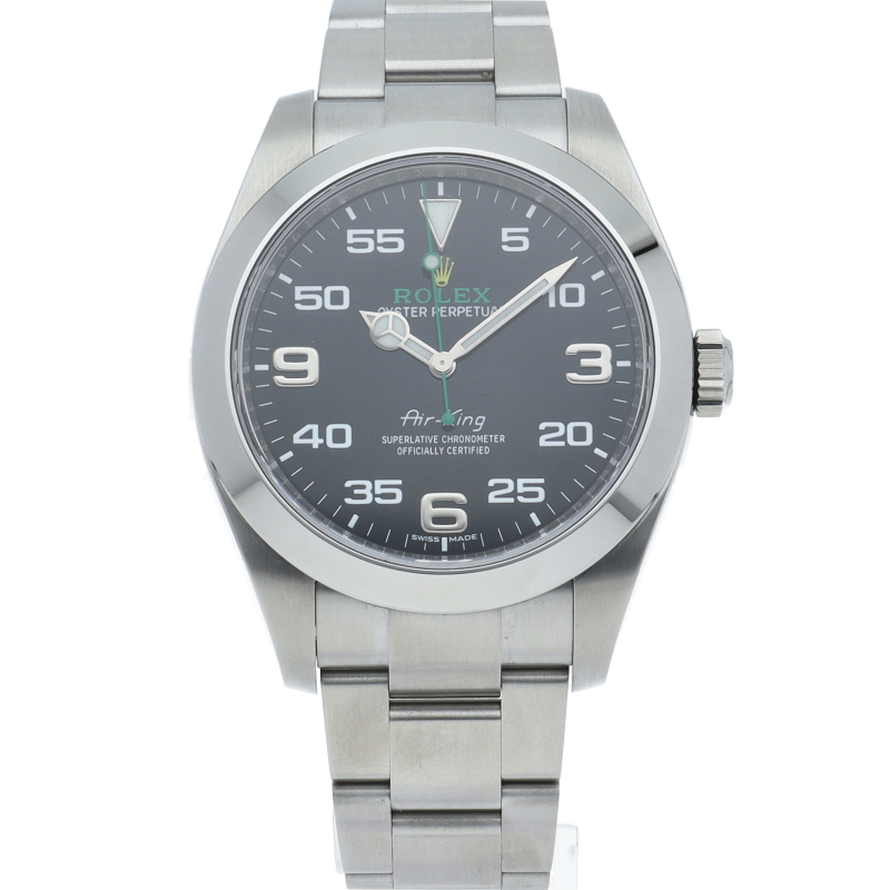 2016年発表のニューモデル、Ref.116900「オイスターパーペチュアル エアキング」。飛躍的に航空技術が進歩した1930年代に高精度を求めるパイロットに愛されていたオイスターモデルをオマージュして製造されたパイロットウォッチです。