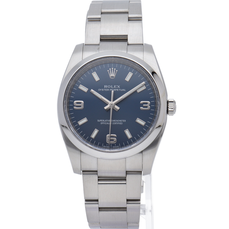 ロレックスの中でもシンプルな3針で時計本来の機能を追求した「オイスターパーペチュアル」。すでに、廃盤となりましたが、程よりサイズが人気のモデルです。