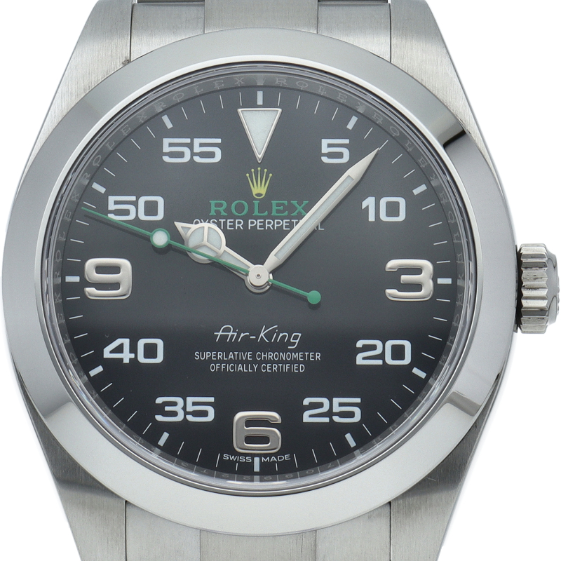 2016年発表のニューモデル、Ref.116900「オイスターパーペチュアル エアキング」。飛躍的に航空技術が進歩した1930年代に高精度を求めるパイロットに愛されていたオイスターモデルをオマージュして製造されたパイロットウォッチです。