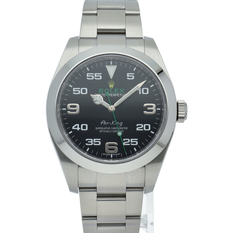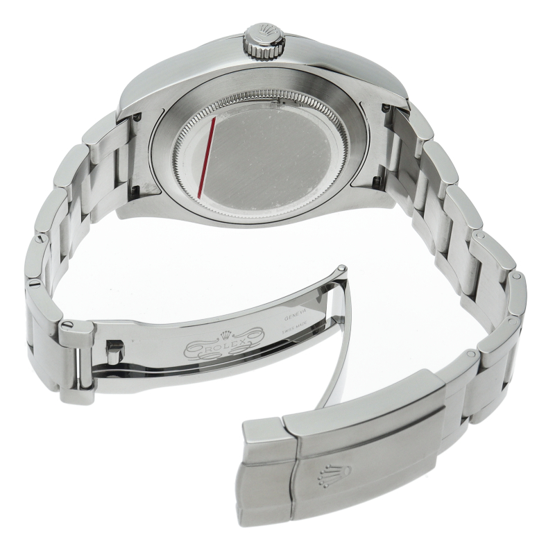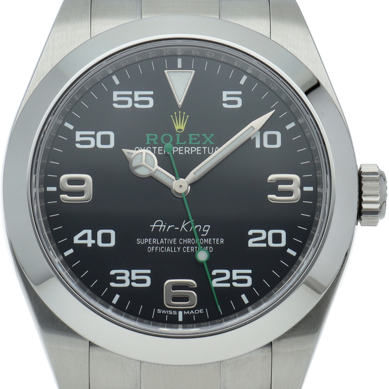 2016年発表のニューモデル、Ref.116900「オイスターパーペチュアル エアキング」。飛躍的に航空技術が進歩した1930年代に高精度を求めるパイロットに愛されていたオイスターモデルをオマージュして製造されたパイロットウォッチです。