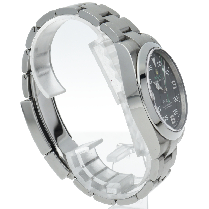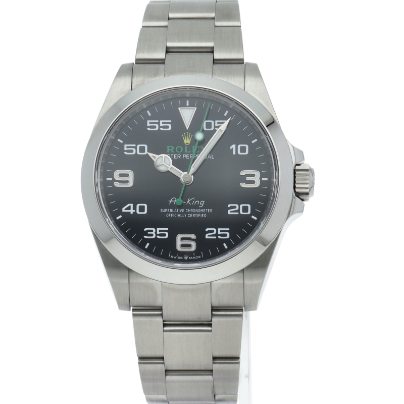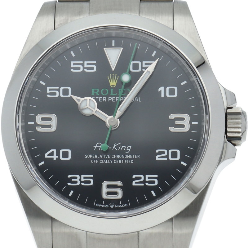 2022年発表のニューモデル、Ref.126900「オイスターパーペチュアル エアキング」。飛躍的に航空技術が進歩した1930年代に高精度を求めるパイロットに愛されていたオイスターモデルをオマージュして製造されたパイロットウォッチです。