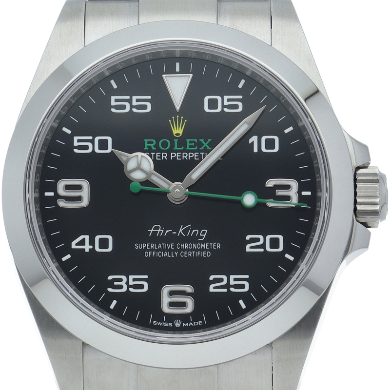 2022年発表のニューモデル、Ref.126900「オイスターパーペチュアル エアキング」。飛躍的に航空技術が進歩した1930年代に高精度を求めるパイロットに愛されていたオイスターモデルをオマージュして製造されたパイロットウォッチです。
