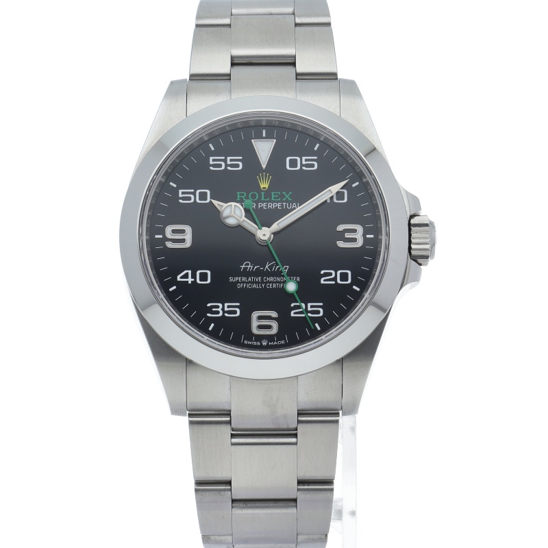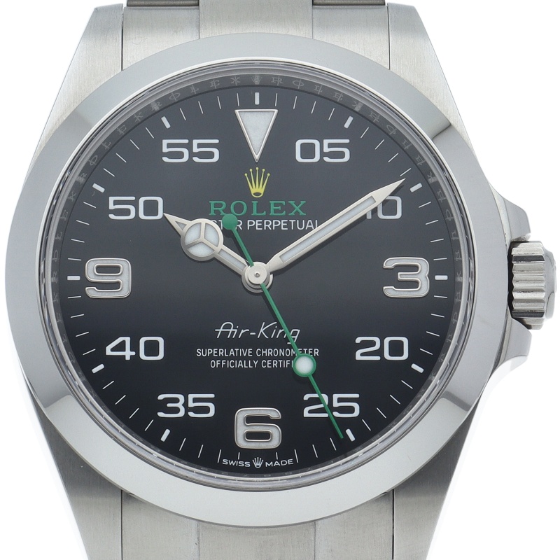 2022年発表のニューモデル、Ref.126900「オイスターパーペチュアル エアキング」。飛躍的に航空技術が進歩した1930年代に高精度を求めるパイロットに愛されていたオイスターモデルをオマージュして製造されたパイロットウォッチです。