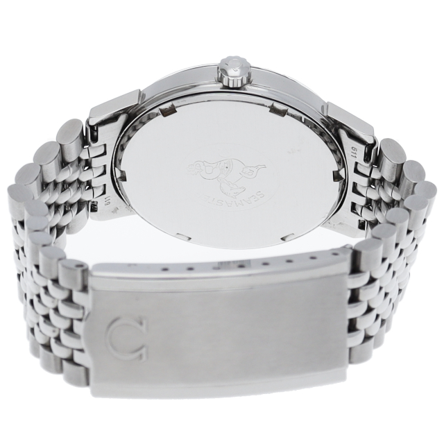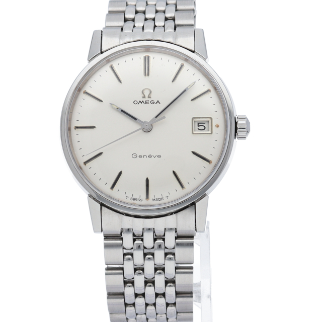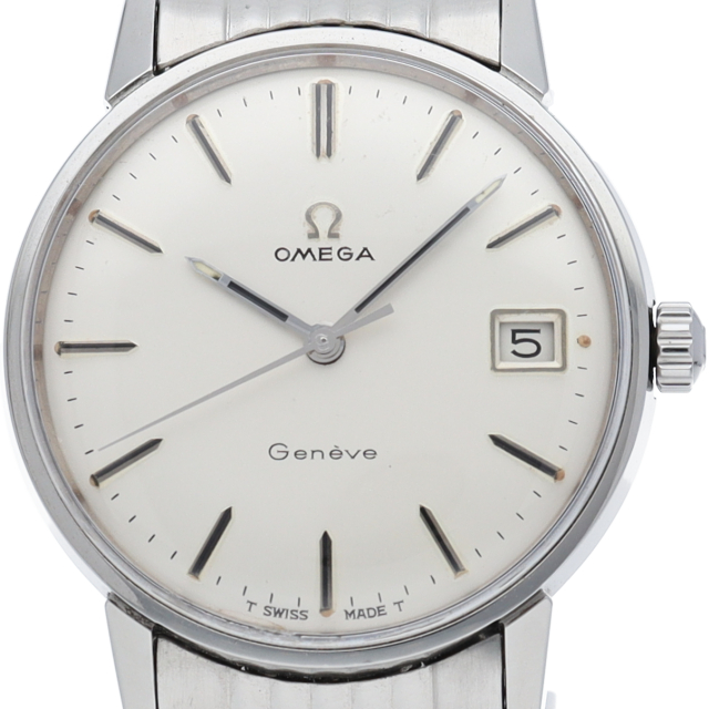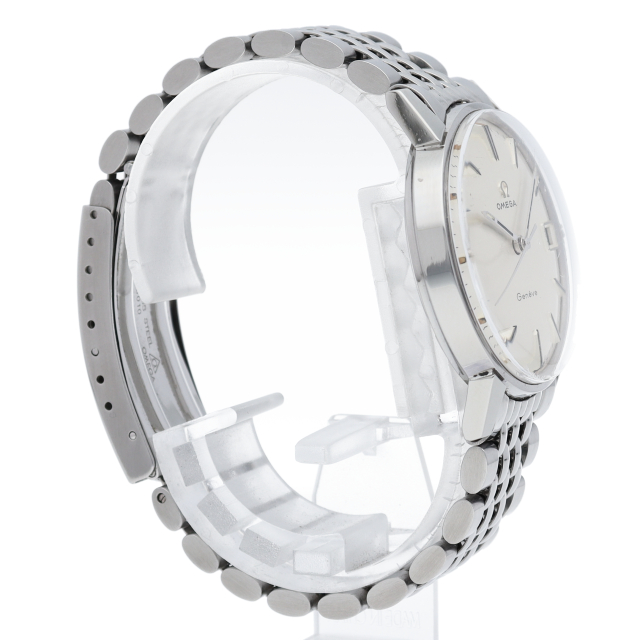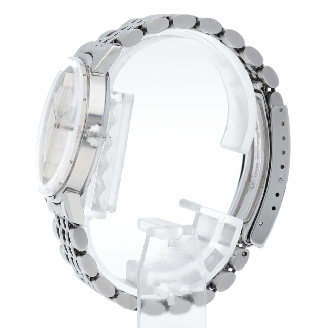 シルバーを基調としたシンプルな配色のアンティークモデル。フェイスとインデックスとのさりげないコントラストも素晴らしく洗練されておりアンティークオメガの存在感をより放っております。12時は良いアクセントになったダブルのインデックスも楽しめます。