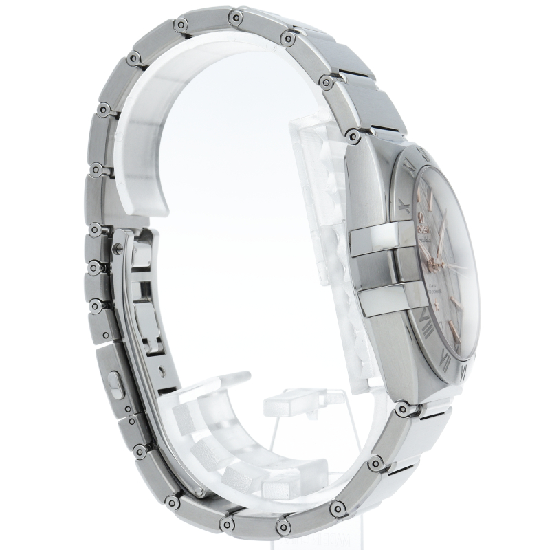 「4つの爪」と呼称されるベゼルがアイコンとなる、オメガの上級モデルがコンステレーションです。3時位置に日付が搭載される実用に適したモデルです。フリースプラングテンプに取り付けたシリコン製ヒゲゼンマイを採用した、60時間のパワーリザーブを備える、オメガ自社製自動巻きコーアクシャルムーブメント・オメガ8800を搭載しています。ケースバックはシースルー仕様となっております。