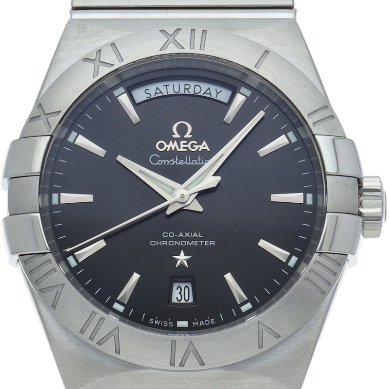 オメガを代表するドレスウォッチ「コンステレーション」。今までなかったデイデイト機能を搭載。シンプルかつ上品なデザインでスタイルを選ばずに使用できる人気モデルでございます。