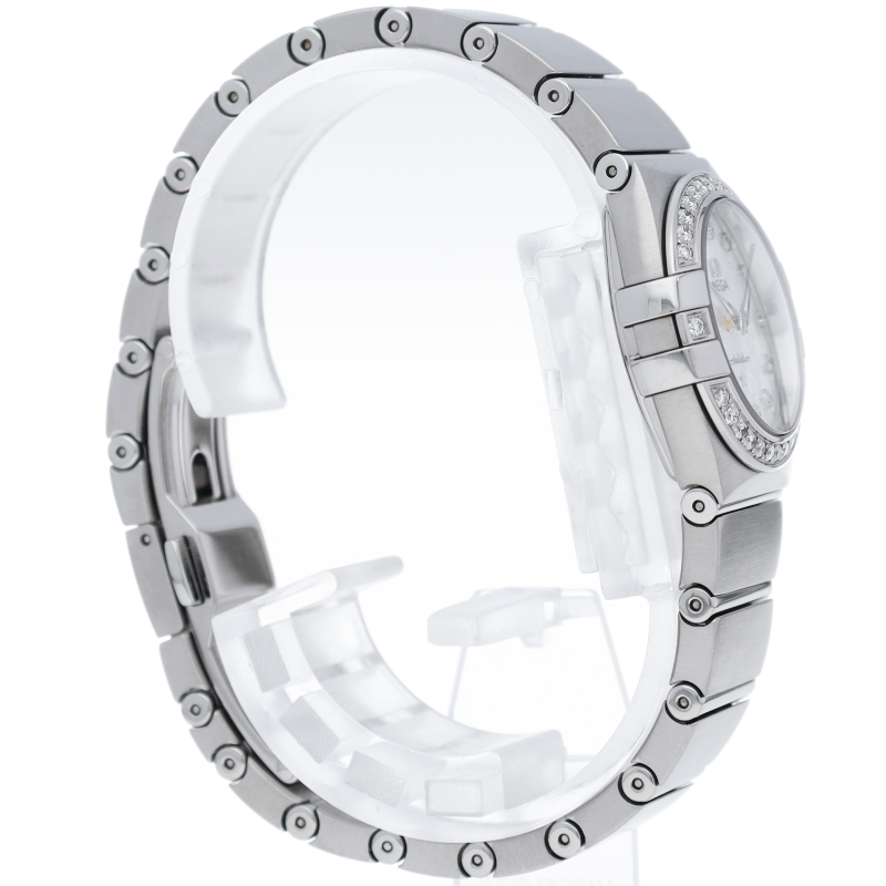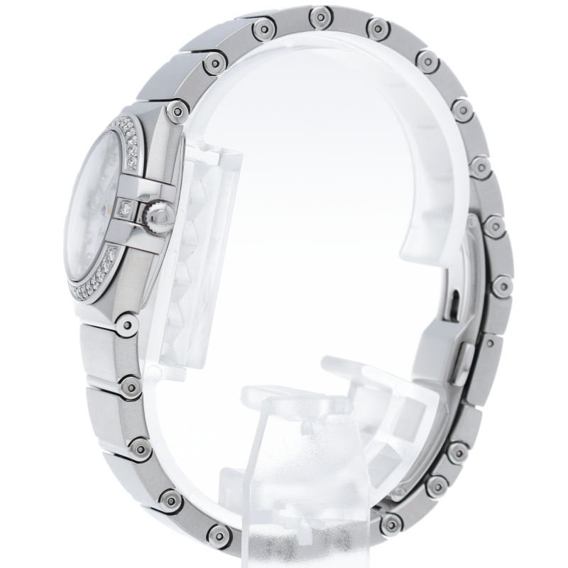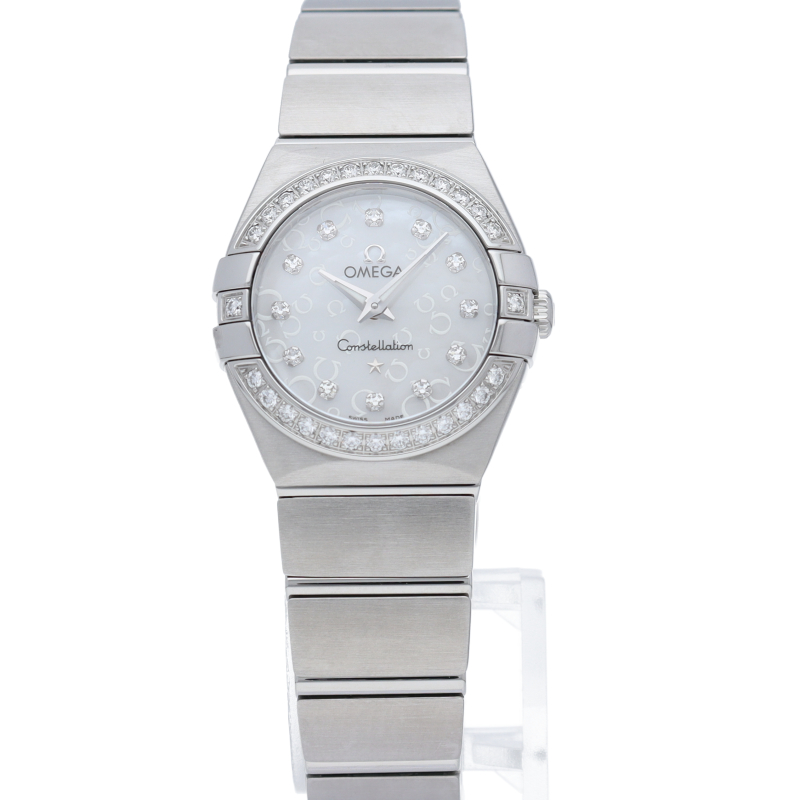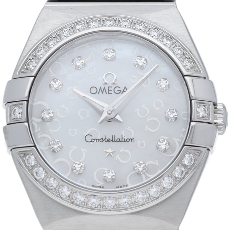 オメガを代表するドレスウォッチ「コンステレーション」。シンプルかつ上品なデザインでスタイルを選ばずに使用できます。贅沢に施された、ダイヤベゼルがラグジュアリーな輝きを放ちます。