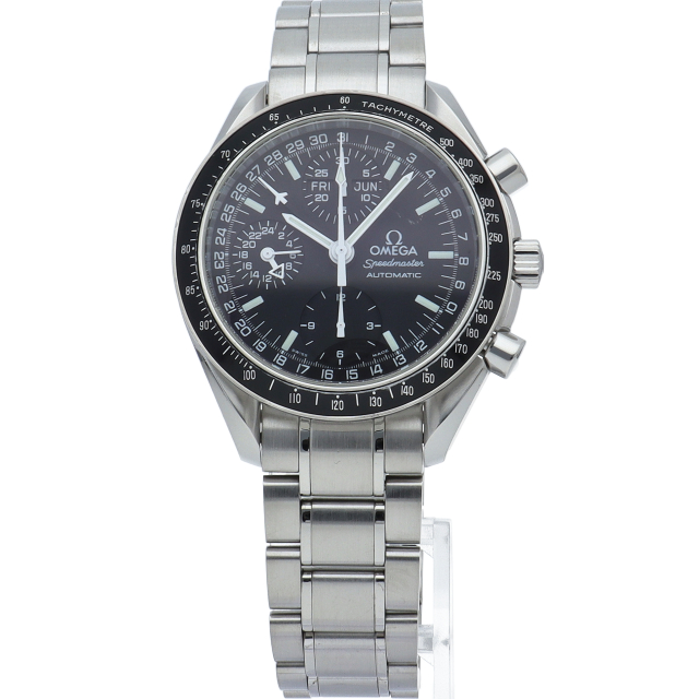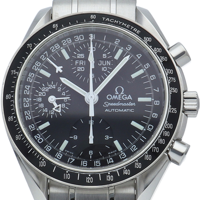オメガの人気「スピードマスター」。クロノグラフ、月・日・曜日表示機能がついた便利な多機能ウォッチ。スタイルを選ばずにご使用いただける便利な1本。