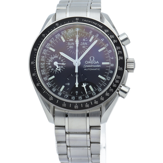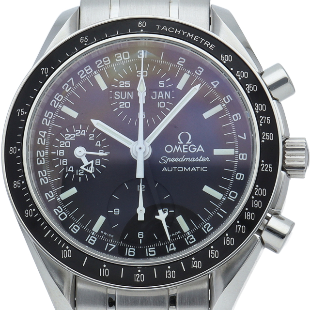 オメガの人気「スピードマスター」。クロノグラフ、月・日・曜日表示機能がついた便利な多機能ウォッチ。スタイルを選ばずにご使用いただける便利な1本。