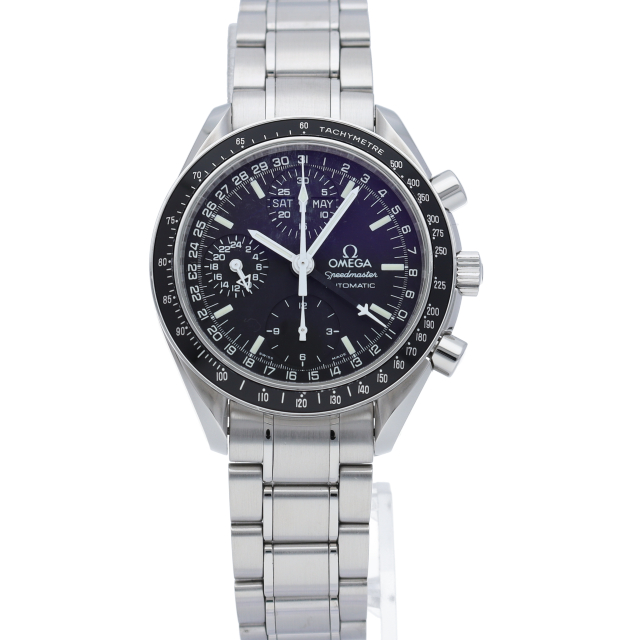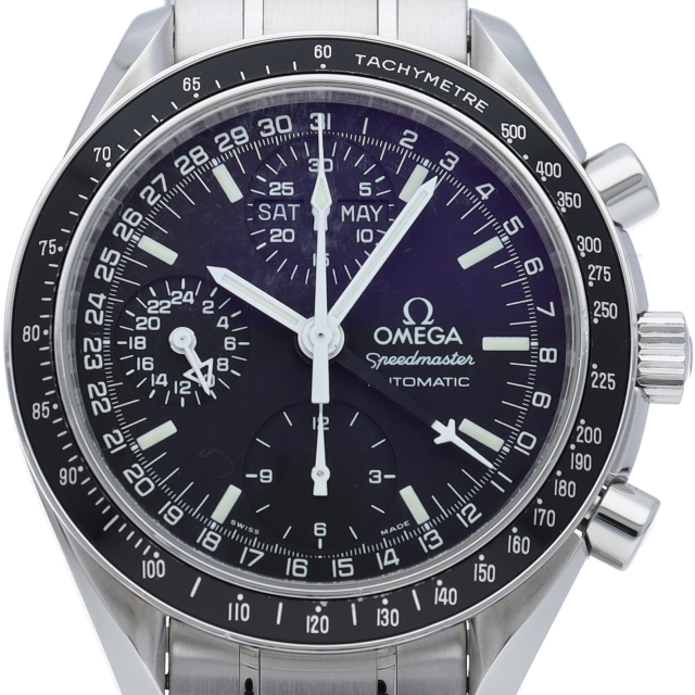 オメガの人気「スピードマスター」。クロノグラフ、月・日・曜日表示機能がついた便利な多機能ウォッチ。スタイルを選ばずにご使用いただける便利な1本。
