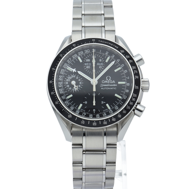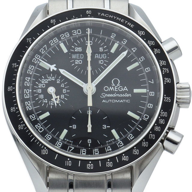 オメガの人気「スピードマスター」。クロノグラフ、月・日・曜日表示機能がついた便利な多機能ウォッチ。スタイルを選ばずにご使用いただける便利な1本。