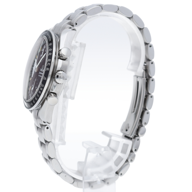 オメガの人気「スピードマスター」。クロノグラフ、月・日・曜日表示機能がついた便利な多機能ウォッチ。スタイルを選ばずにご使用いただける便利な1本。