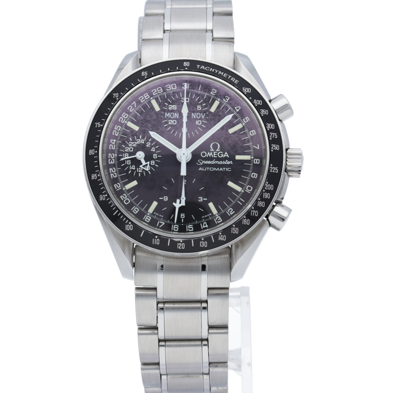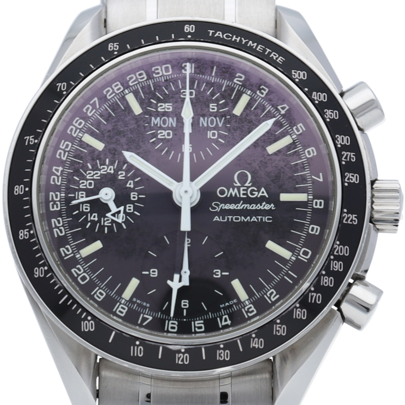 オメガの人気「スピードマスター」。クロノグラフ、月・日・曜日表示機能がついた便利な多機能ウォッチ。スタイルを選ばずにご使用いただける便利な1本。