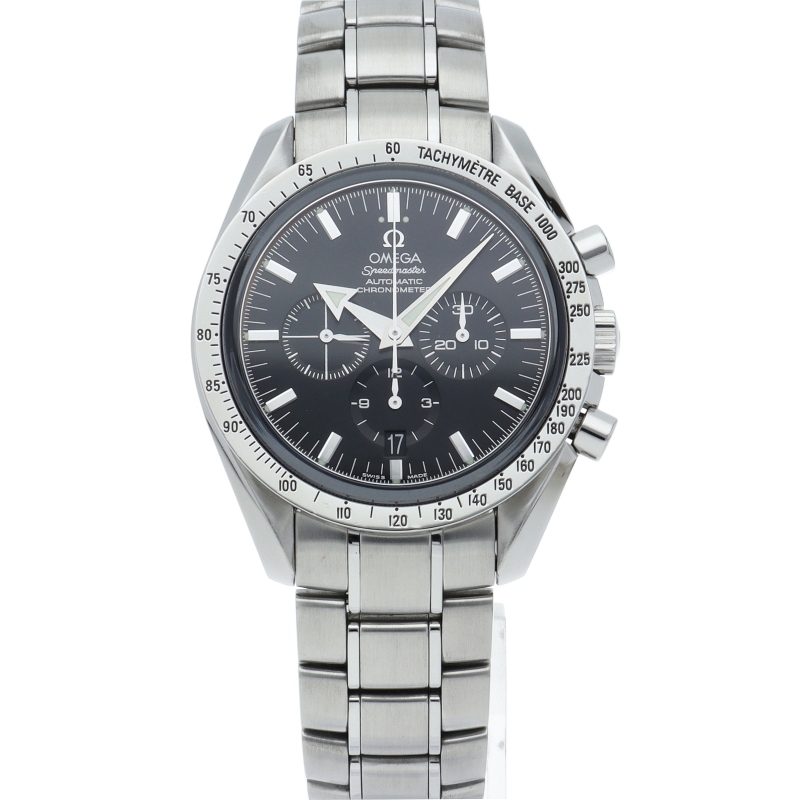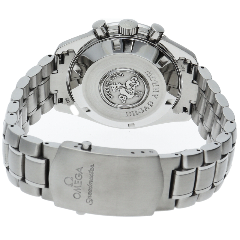 ファーストモデルを彷彿とさせる弓矢型の針「ブロードアロー」を採用したスピードマスターコラムホイール機構搭載の自動巻きクロノグラフ、オメガCal.3303を搭載した公式認定クロノメーター。