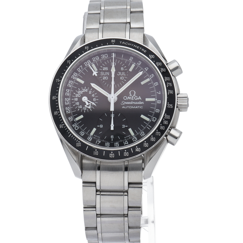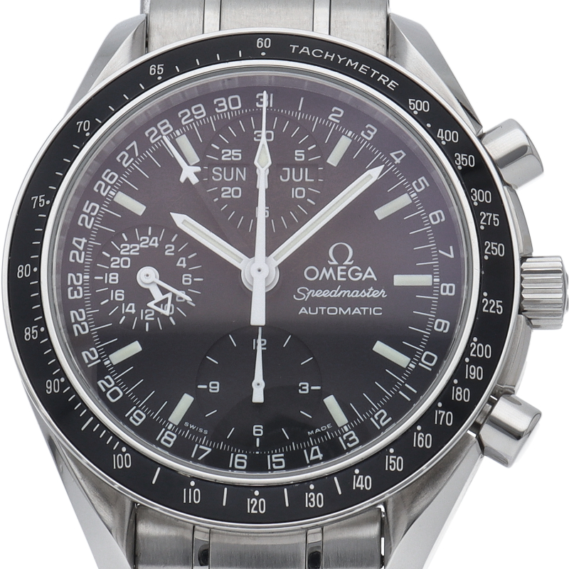 オメガの人気「スピードマスター」。クロノグラフ、月・日・曜日表示機能がついた便利な多機能ウォッチ。スタイルを選ばずにご使用いただける便利な1本。