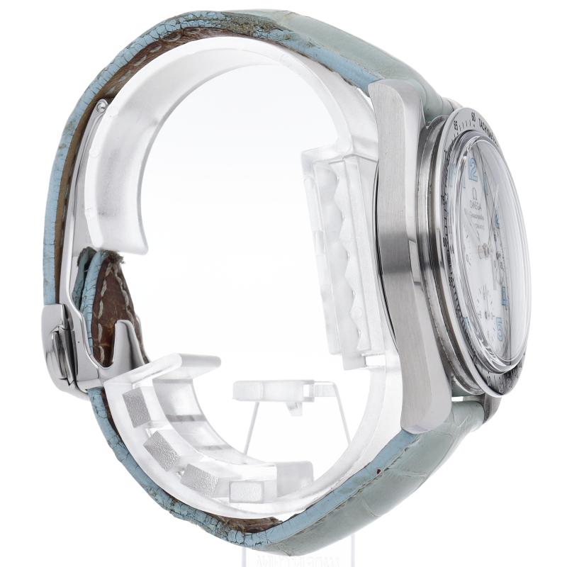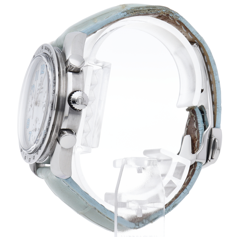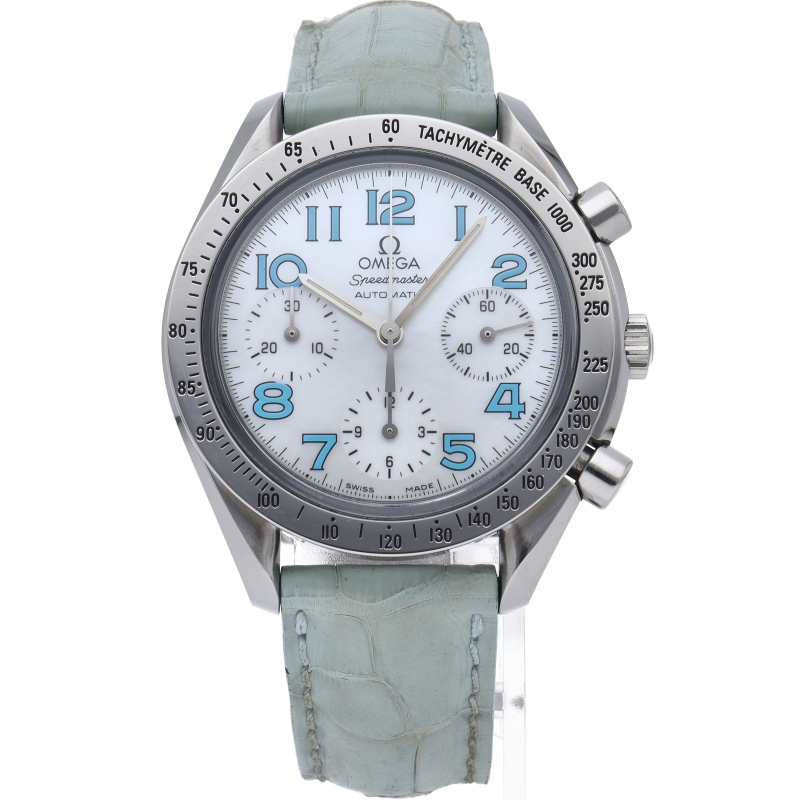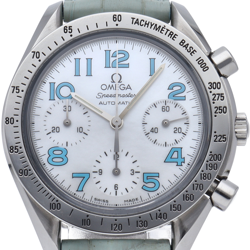 オメガの代表的な人気シリーズ「スピードマスター・デイト」。鮮やかなホワイトシェル文字盤。珍しい逸品です。
