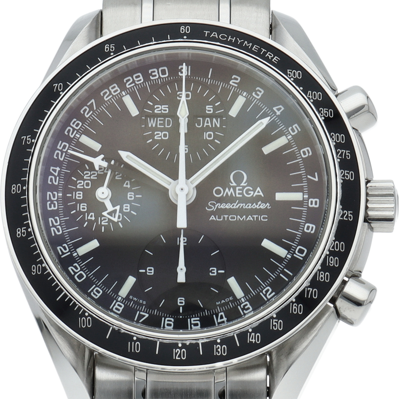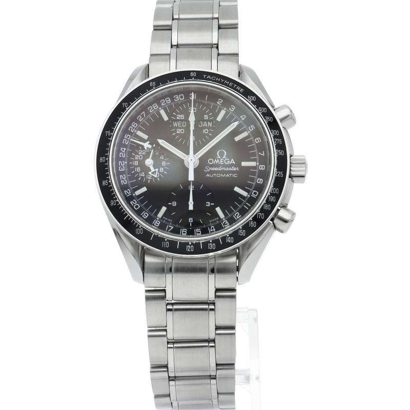 オメガの人気「スピードマスター」。クロノグラフ、月・日・曜日表示機能がついた便利な多機能ウォッチ。スタイルを選ばずにご使用いただける便利な1本。