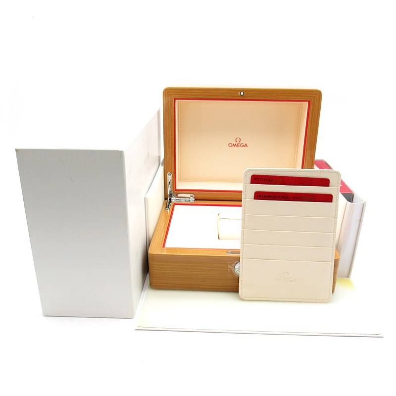 オメガのスピードマスター生誕50周年記念モデルです。シースルーバックになっており、コーアクシャルムーブメントを堪能できます。ブロードアロー針を採用。