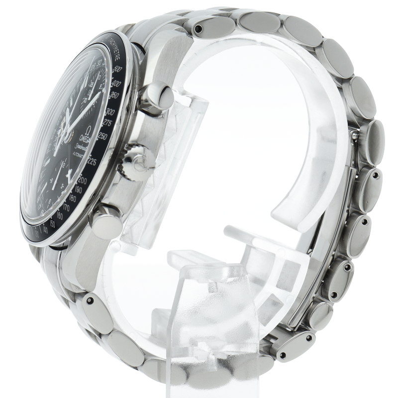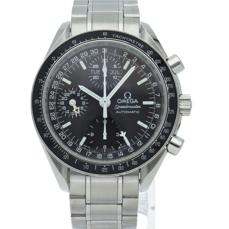 オメガの人気「スピードマスター」。クロノグラフ、月・日・曜日表示機能がついた便利な多機能ウォッチ。スタイルを選ばずにご使用いただける便利な1本。