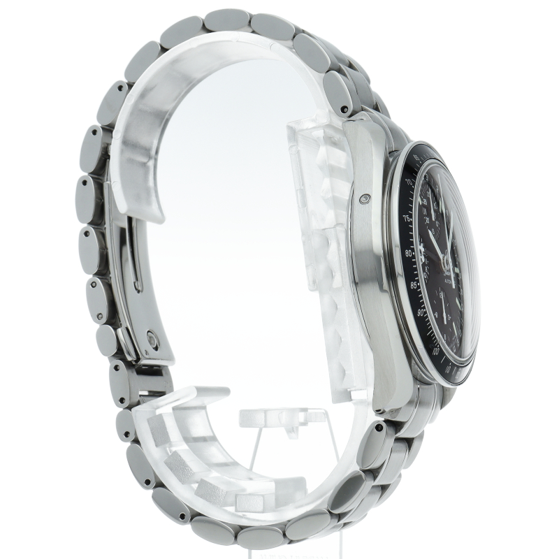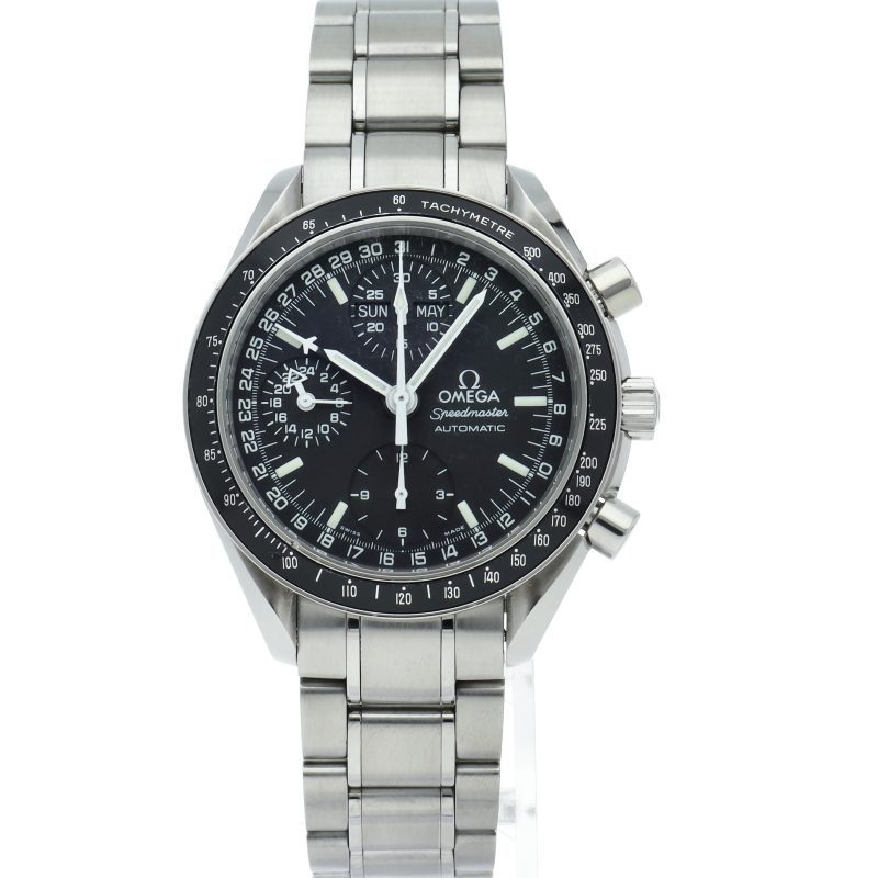 オメガの人気「スピードマスター」。クロノグラフ、月・日・曜日表示機能がついた便利な多機能ウォッチ。スタイルを選ばずにご使用いただける便利な1本。