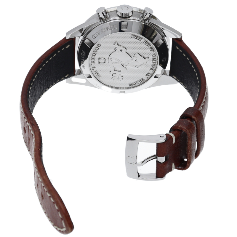 針や立体感のある文字盤、リューズガードのないケースデザインが特徴的な、セカンドモデルのデザインを忠実に再現。48時間パワーリザーブを備える、オメガ自社製手巻きクロノグラフムーブメント・オメガ1861を搭載しています。