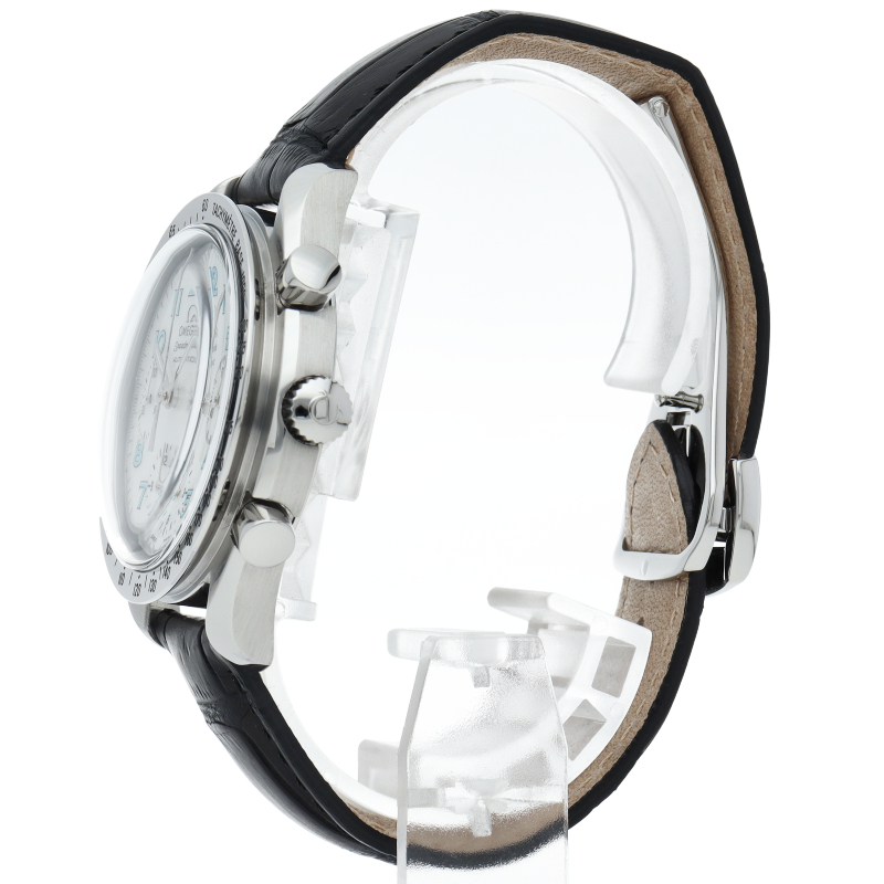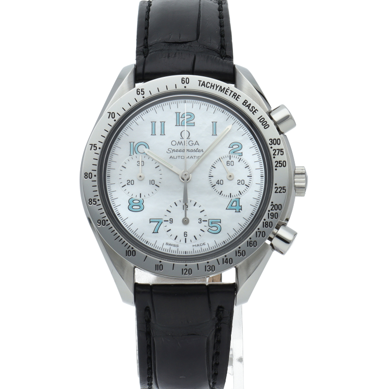オメガの代表的な人気シリーズ「スピードマスター・デイト」。鮮やかなホワイトシェル文字盤。珍しい逸品です。