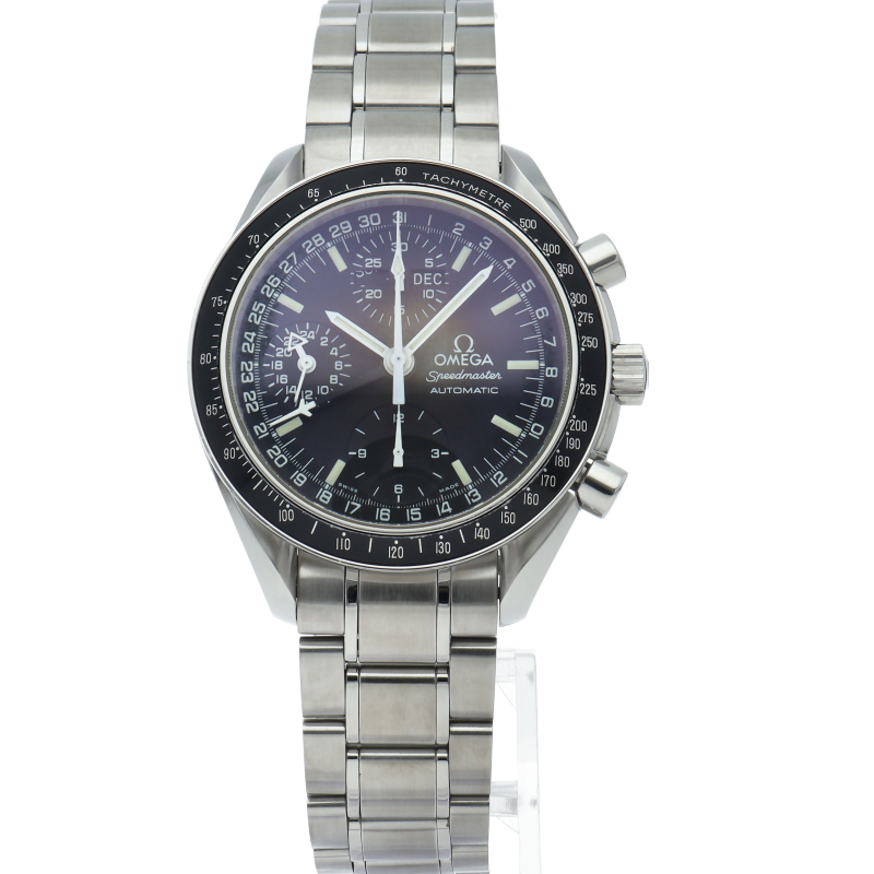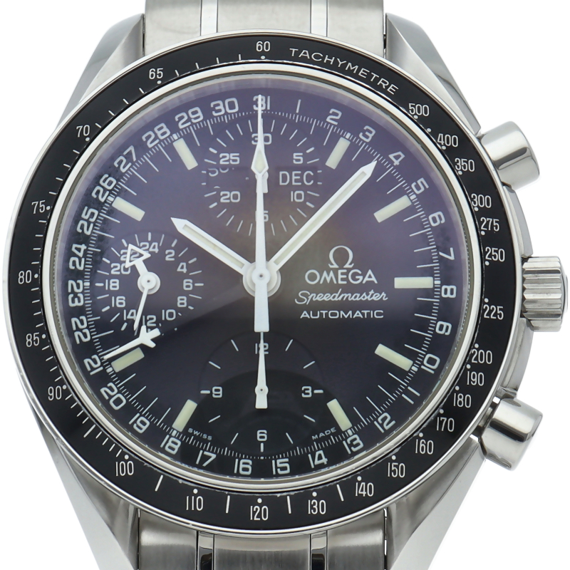 オメガの人気「スピードマスター」。クロノグラフ、月・日・曜日表示機能がついた便利な多機能ウォッチ。スタイルを選ばずにご使用いただける便利な1本。