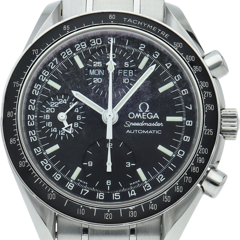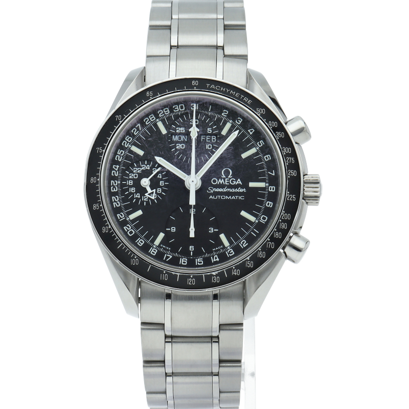 オメガの人気「スピードマスター」。クロノグラフ、月・日・曜日表示機能がついた便利な多機能ウォッチ。スタイルを選ばずにご使用いただける便利な1本。