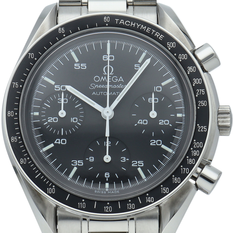 オメガを代表する人気シリーズ「スピードマスター」。プラ風防を使用したレトロな雰囲気かつシンプルにまとまったデザインがスタイルを選ばずにご使用いただけます。