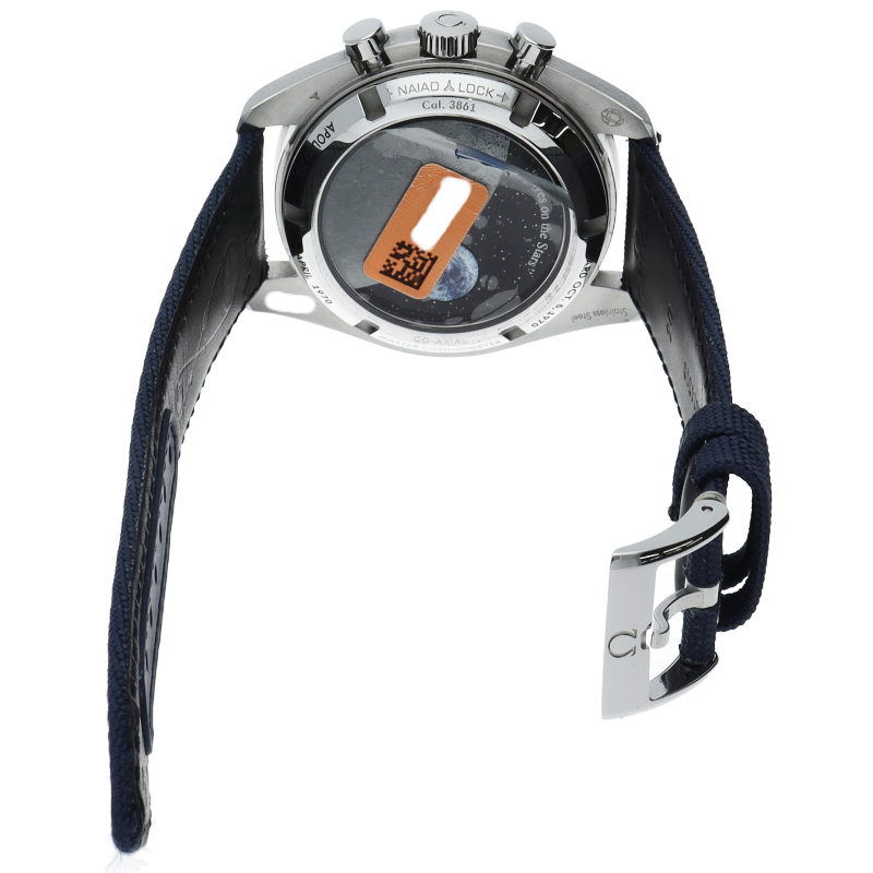 1970年にNASAの宇宙飛行士から贈られた「シルバー スヌーピー アワード」の50周年記念モデルとして作られました。司令機械船に乗ったスヌーピーが、クロノグラフ機能が使用されると回転するマジックハンドにあしらわれています。裏側には地球をかたどったディスクもあり、時計のスモールセコンドに連動して1分間に1回転します。