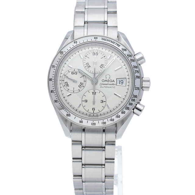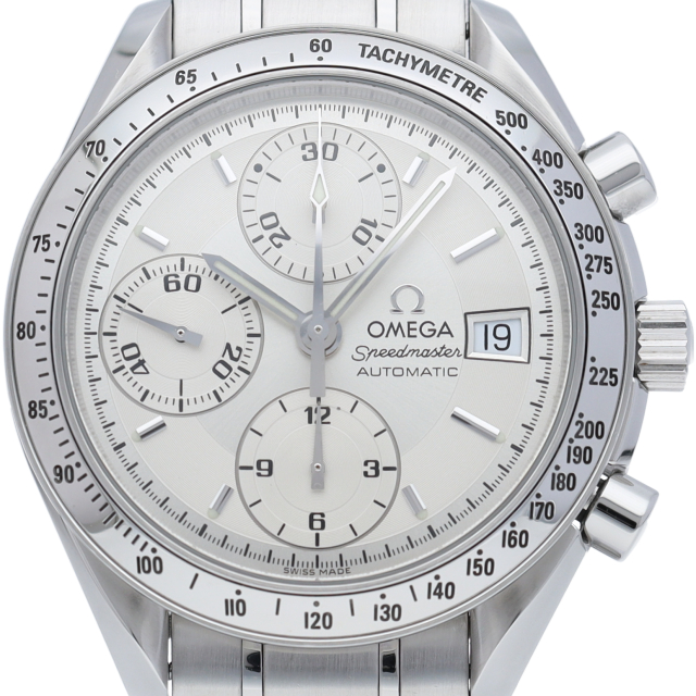 オメガの代表的な人気シリーズ「スピードマスター・デイト」。クロノグラフ・デイト表示機能付きと便利で実用性のある1本です。