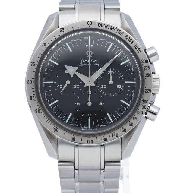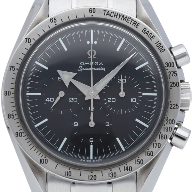 初代スピードマスターの復刻版「ファースト・レプリカ」。アロー針やプラ風防等初代スピードマスターをよく再現したアンティーク風味のある1本。