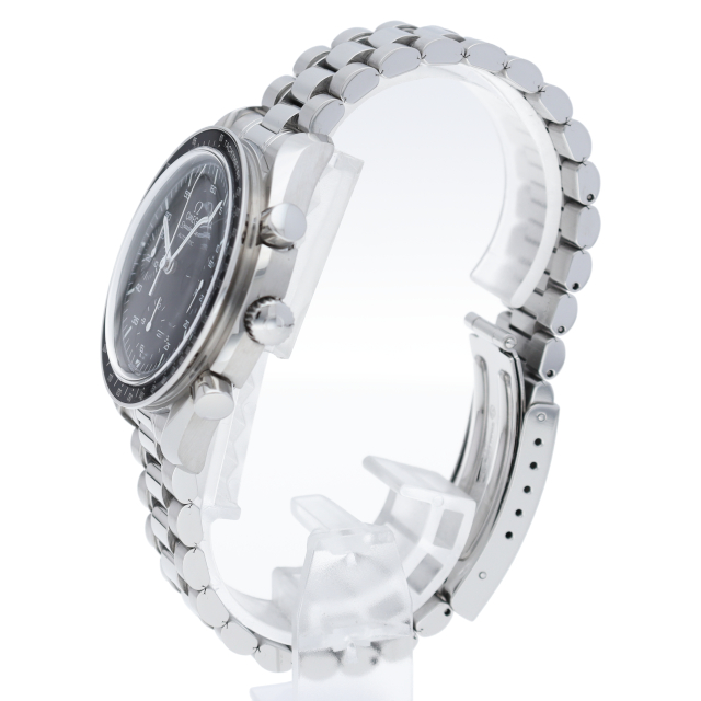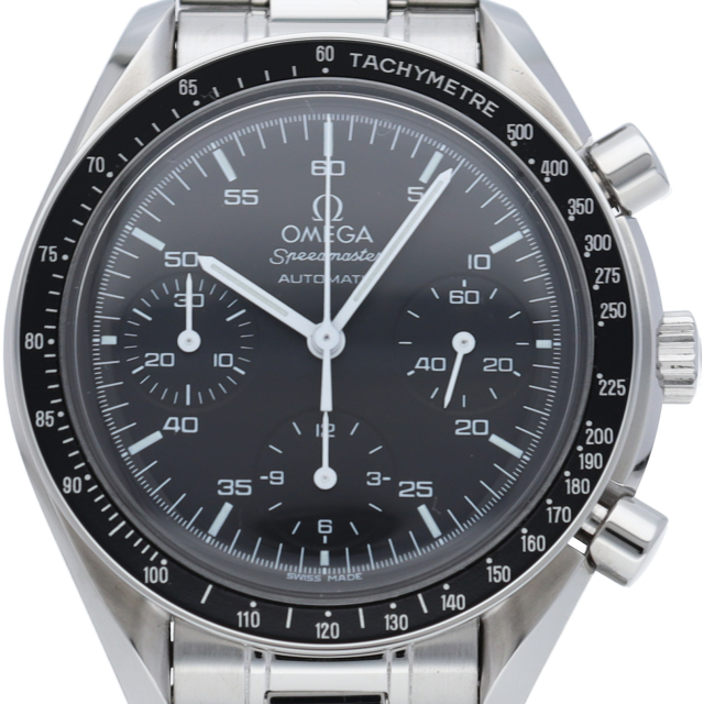 オメガを代表する人気シリーズ「スピードマスター」。プラ風防を使用したレトロな雰囲気かつシンプルにまとまったデザインがスタイルを選ばずにご使用いただけます。