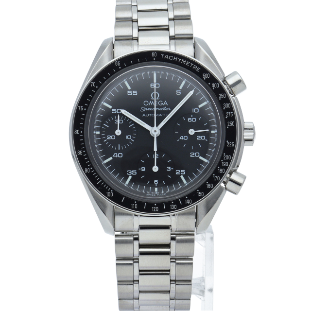 オメガを代表する人気シリーズ「スピードマスター」。プラ風防を使用したレトロな雰囲気かつシンプルにまとまったデザインがスタイルを選ばずにご使用いただけます。